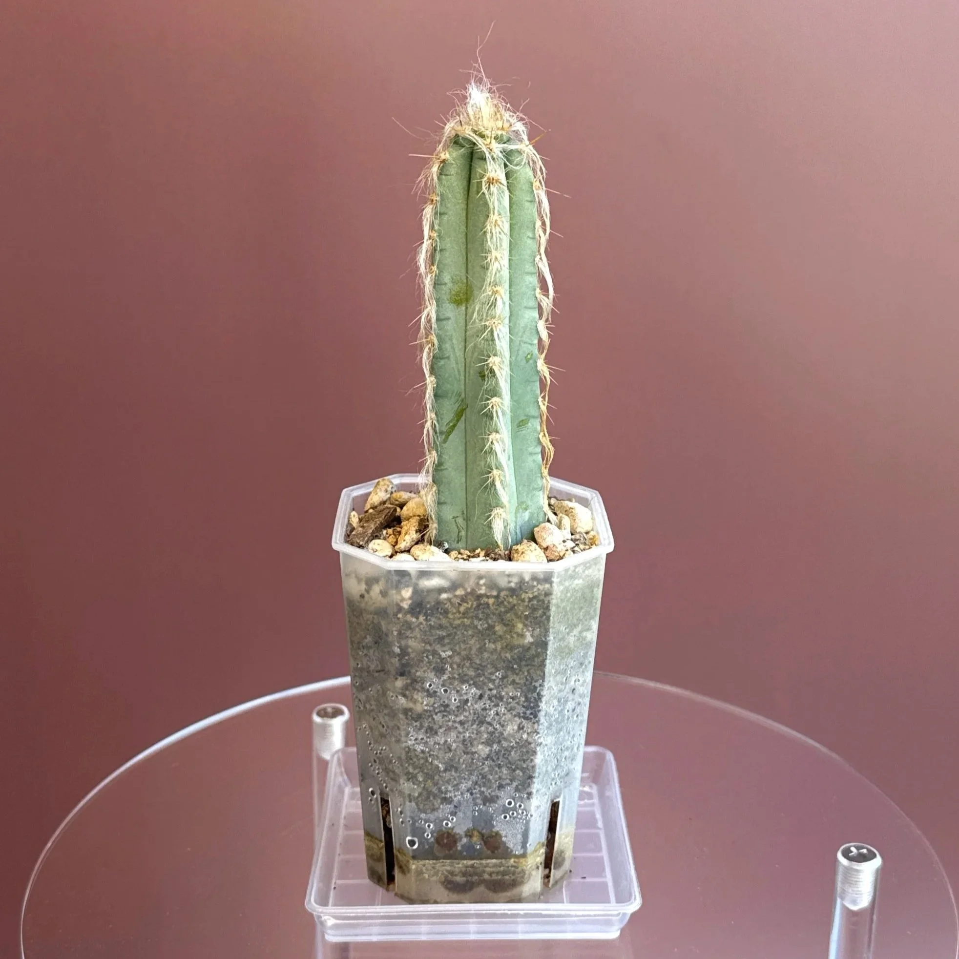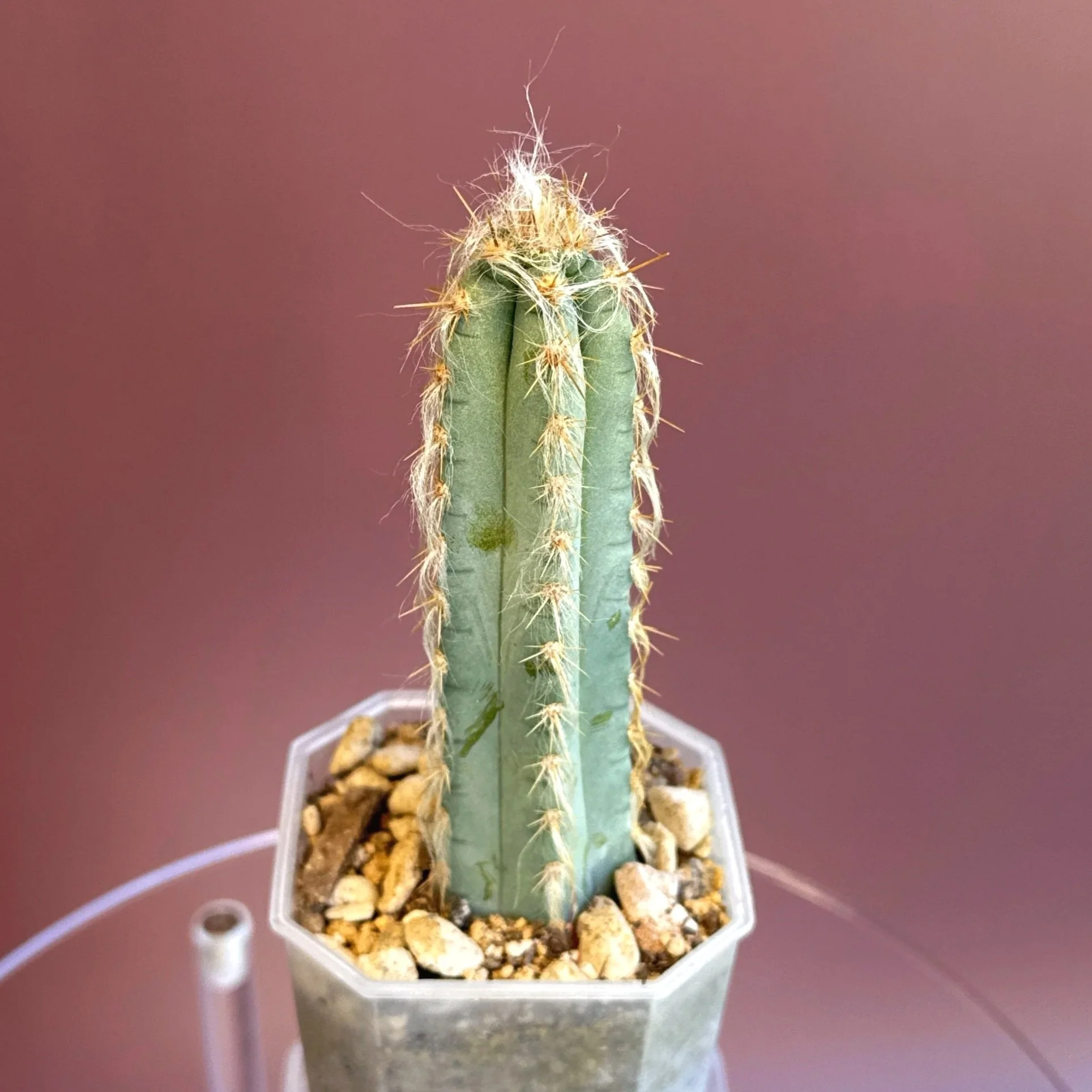 About Plant: A collectors Cacti. The Pilosocereus Pachycladus Variegated is an absolute stunner that brings a vibrant pop of color and a unique texture to any plant collection. Known for its striking blue-green stems with creamy white or yellow variegation, this cactus is sure to turn heads. Native to Brazil, it's commonly referred to as the Blue Torch Cactus, and its tall, columnar growth gives it a statuesque beauty. Please note that this is a live plant. Review all images for any marks/blemishes.