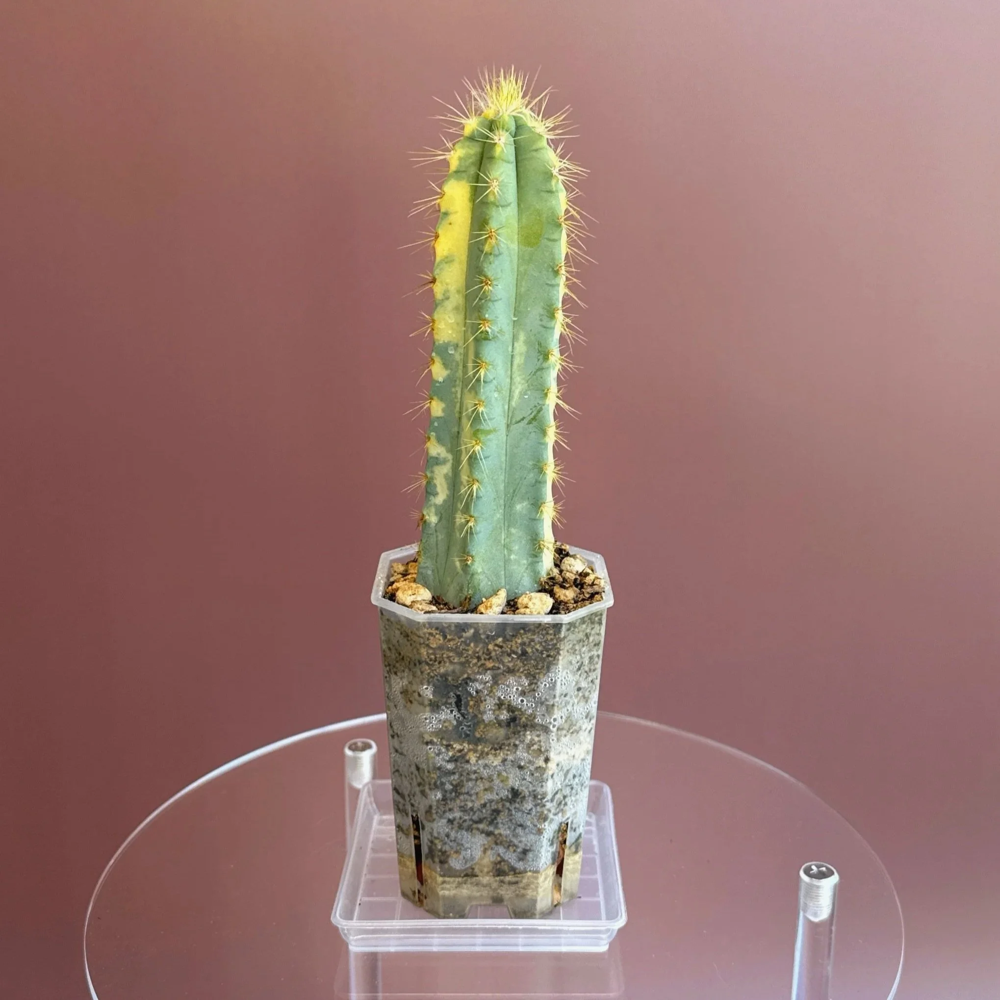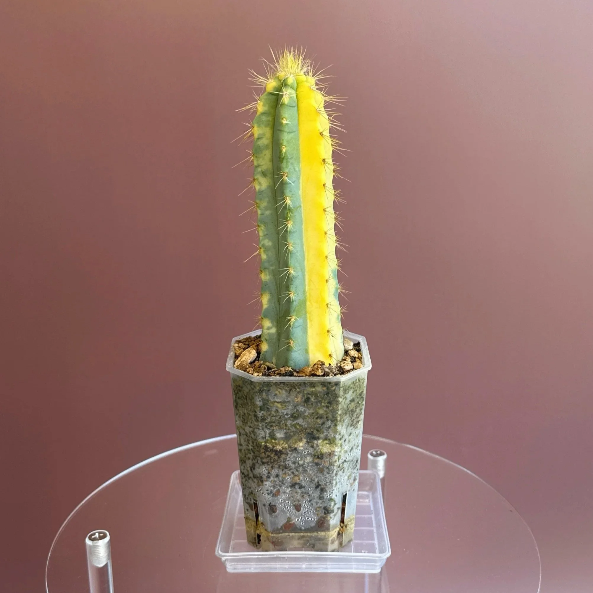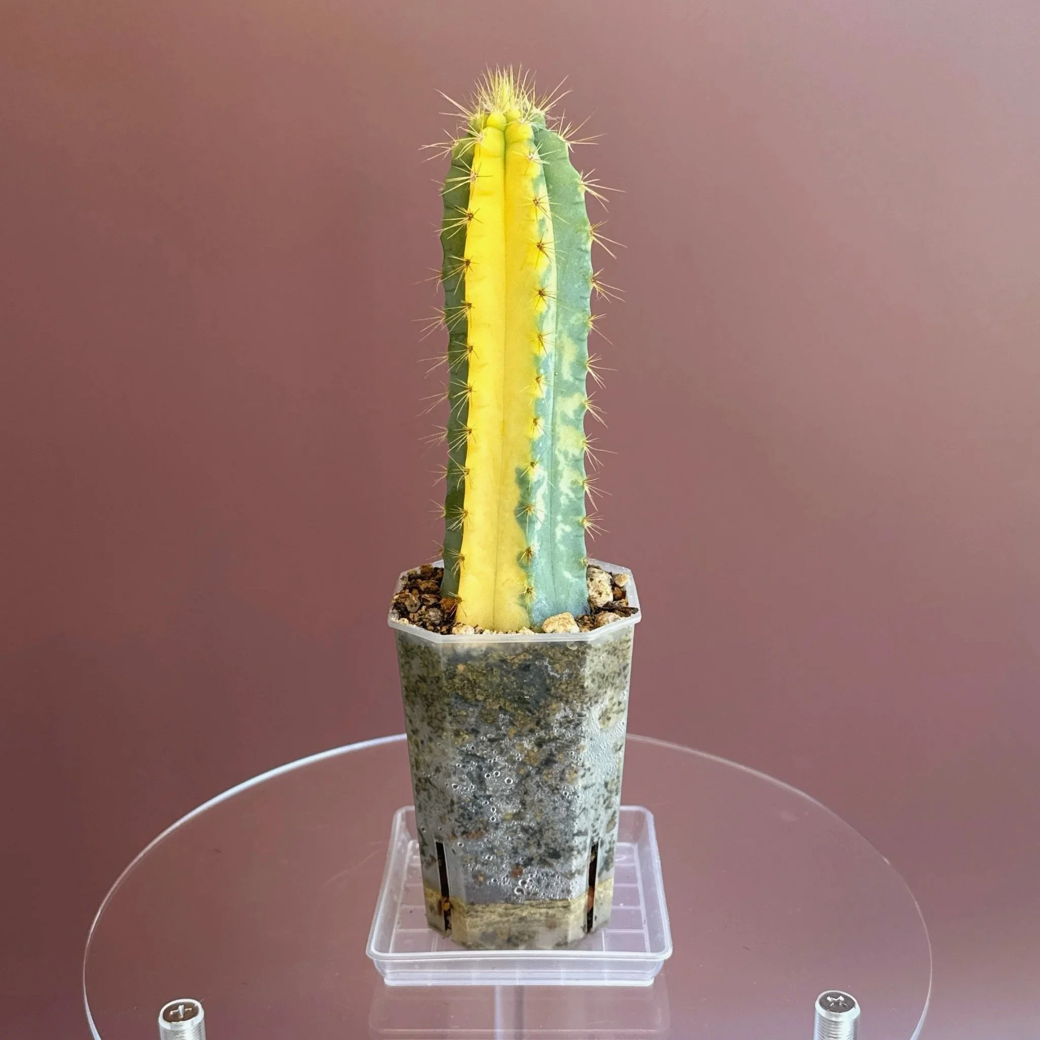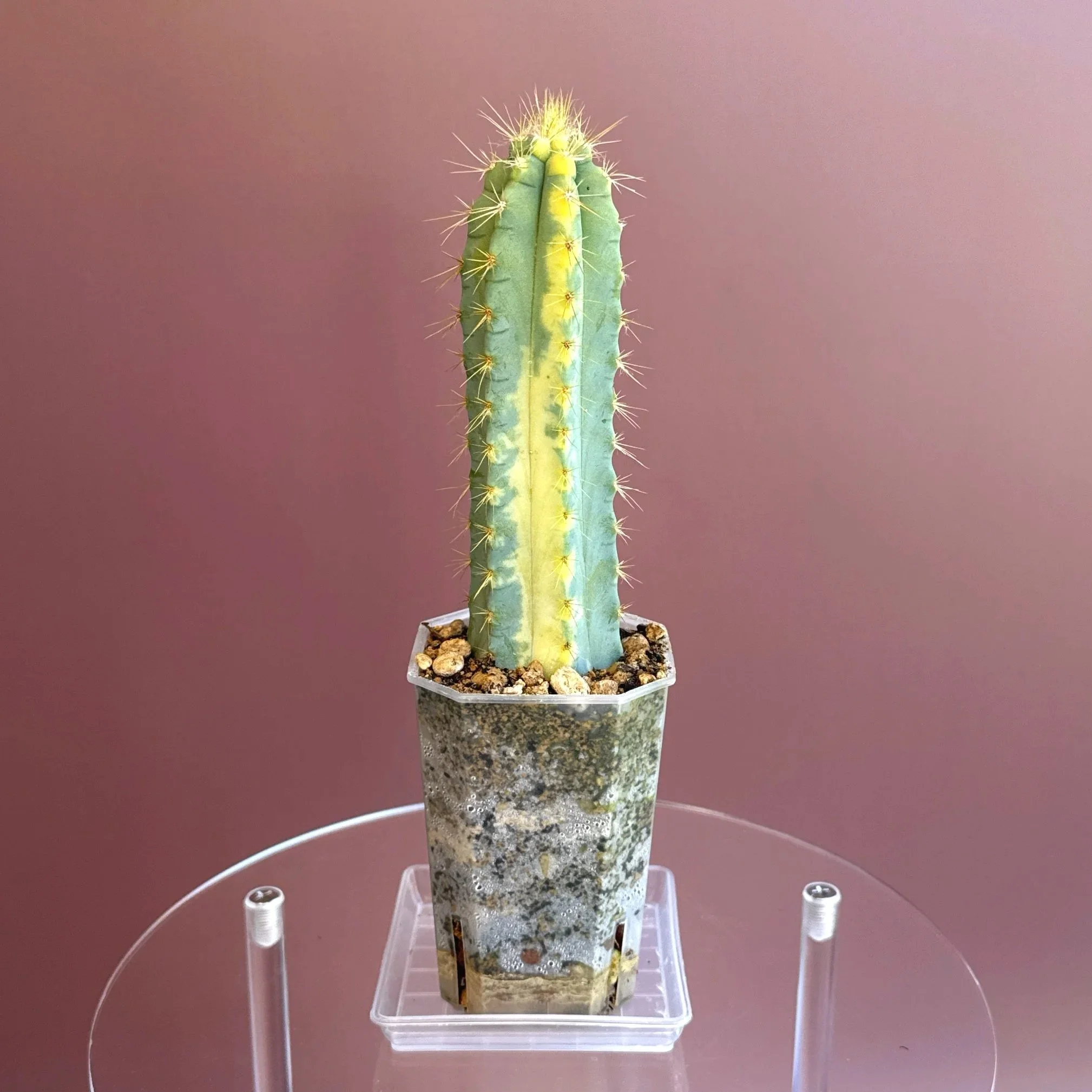 Plant Care: It thrives in full sun light. Do shield it from strong afternoon sun to prevent any scorching to the variegated parts of the plant. Also prefers a well-draining cactus or succulent mix (Add a pouch of — Melty Mix for Cacti + Succulents to your cart). Water the plant sparingly, allowing the soil to dry out completely between waterings. This cactus is a warm-weather lover and does best in temperatures between 18-27°C. It doesn’t tolerate frost (snow), so keep it indoors or in a warm spot during the colder months. Humidity isn’t much of an issue, making it ideal for sunny indoor spaces, patios and balconies. During the growing season (spring and summer), feed with a cactus-specific or balanced liquid fertilizer diluted to half strength. No need to fertilize in the winter when the plant is resting.